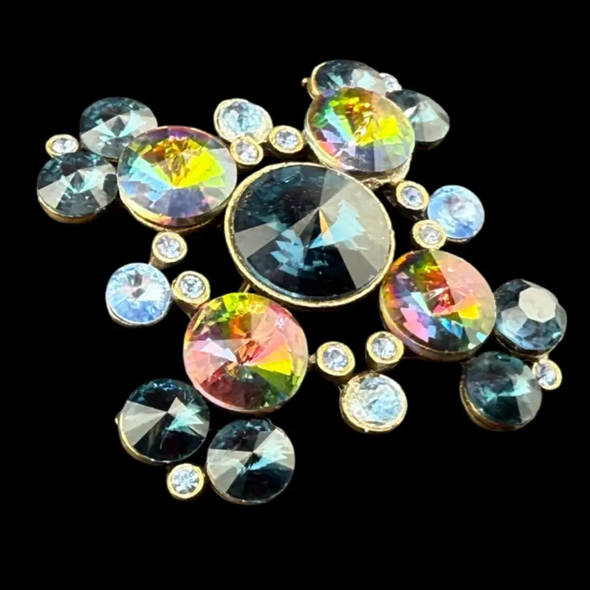 Wiess Rivoli Watermelon AB Rhinestone Brooch 2"