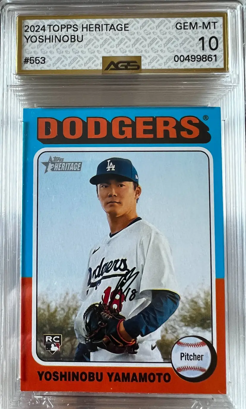 Check out this Yoshinobu Yamamoto card from the 2024 Topps Heritage series, graded GEM MT 10. A must-have for any Dodgers fan or card collector.
